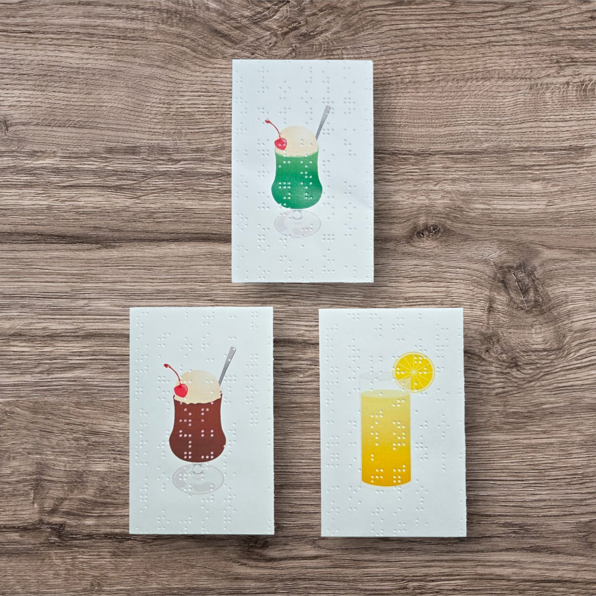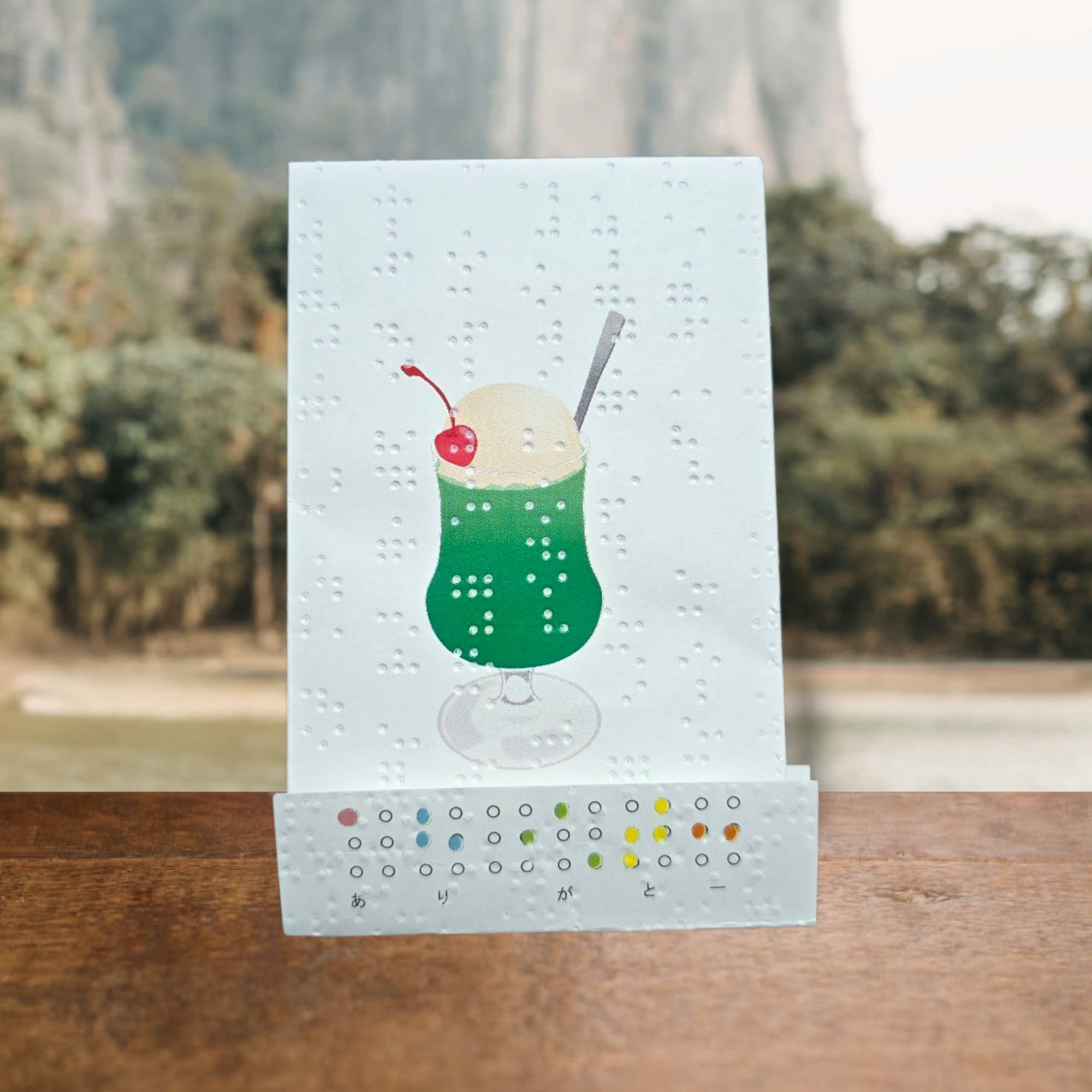その点字跡の白く抜ける特性を利用し、ソーダの泡を表現しています。