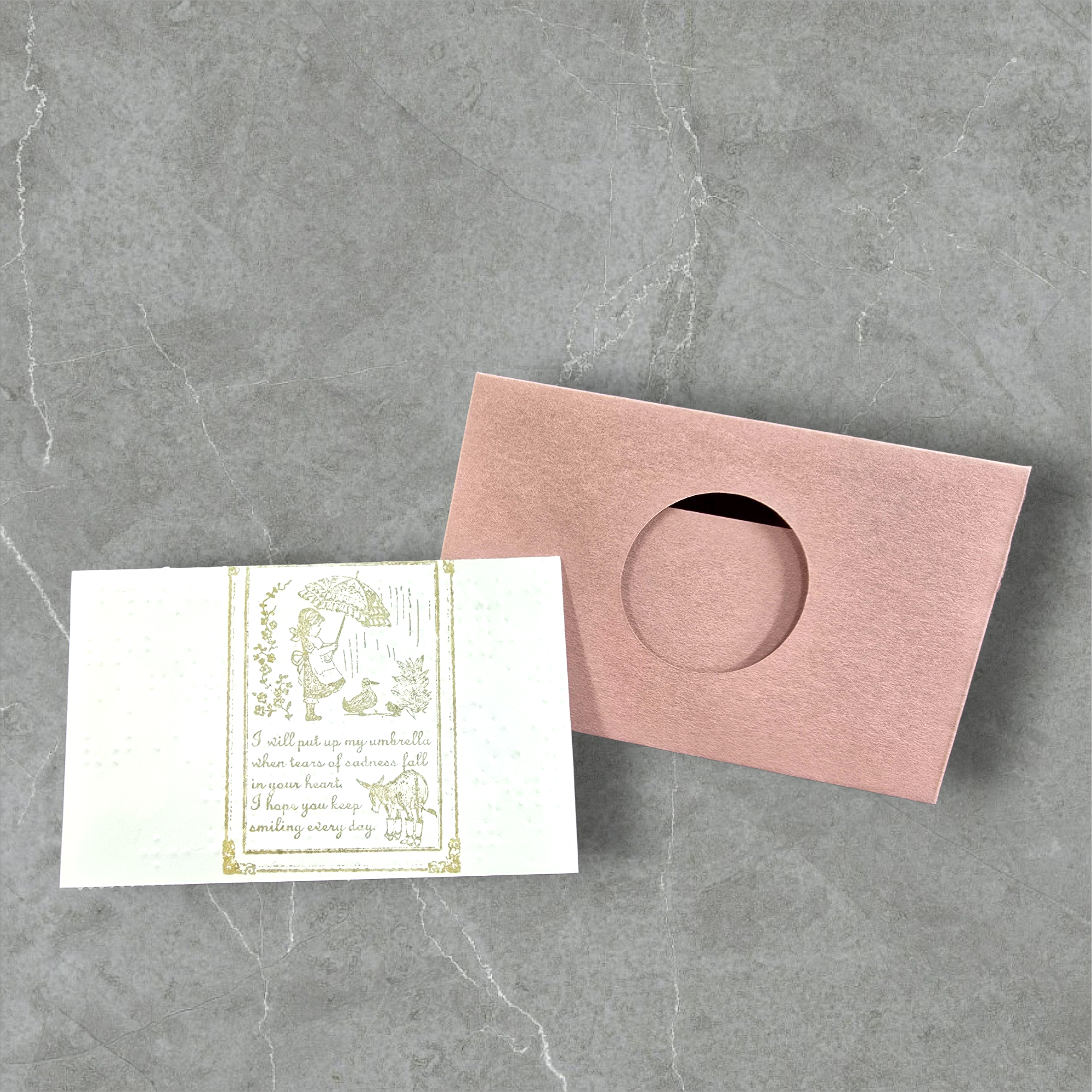 点字用紙に金色のスタンプが映えるメッセージカードです。