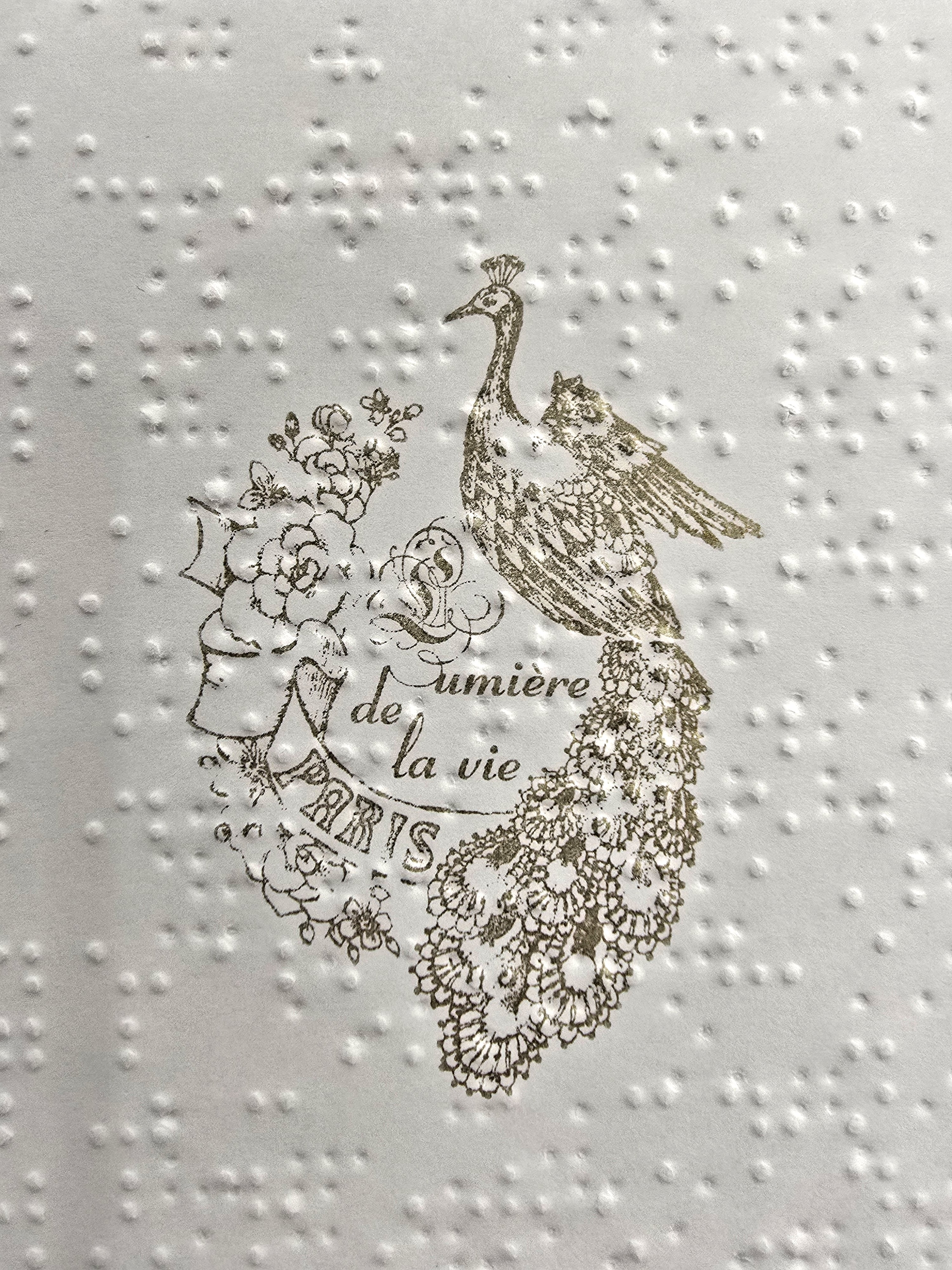 点字用紙は元々厚みがあり、軽くつぶした点字のポツポツとした跡が和紙のような素敵な風合いです。