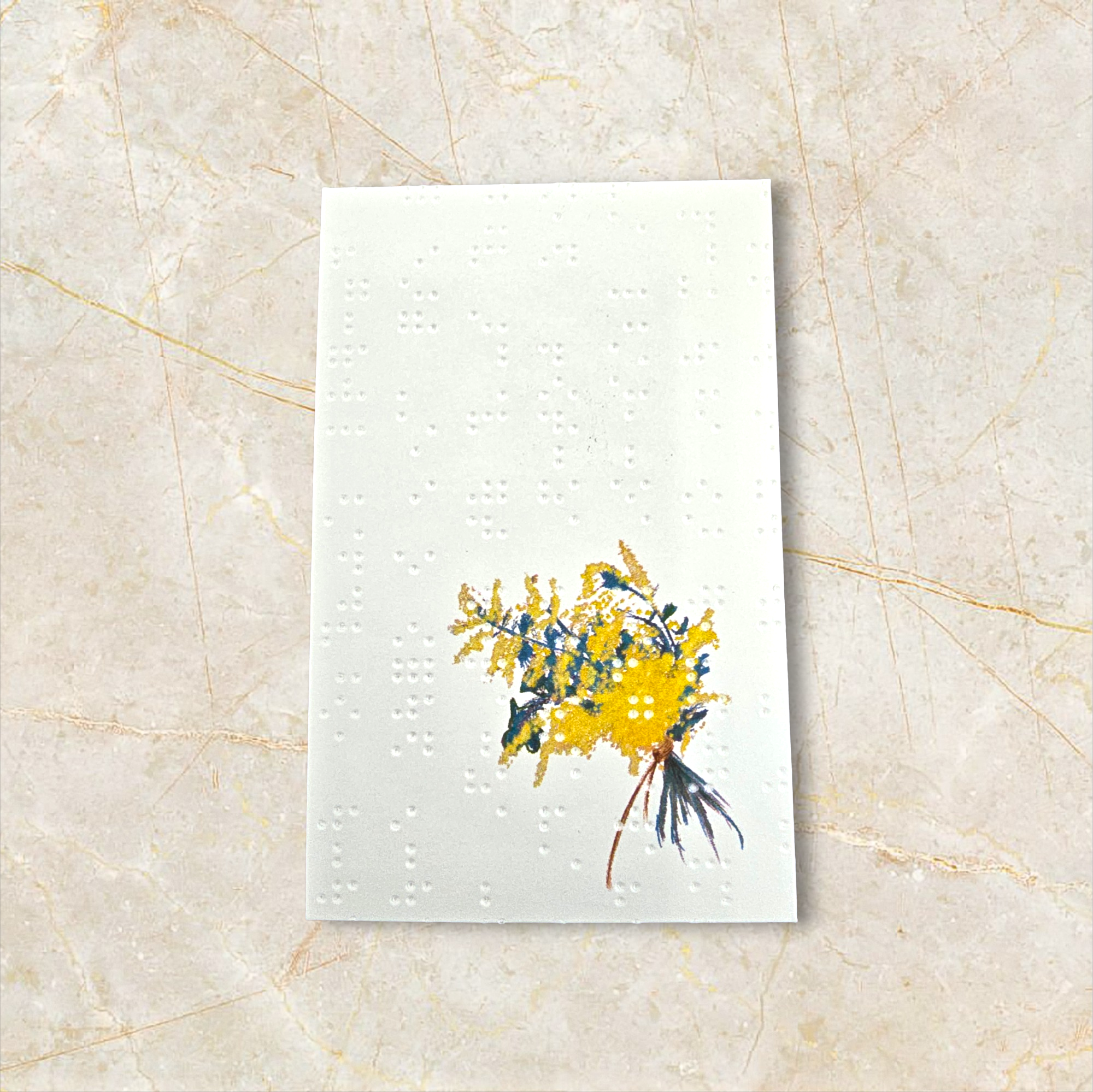 点字用紙は元々厚みがあり、軽くつぶした点字のポツポツとした跡が和紙のような素敵な風合いです。