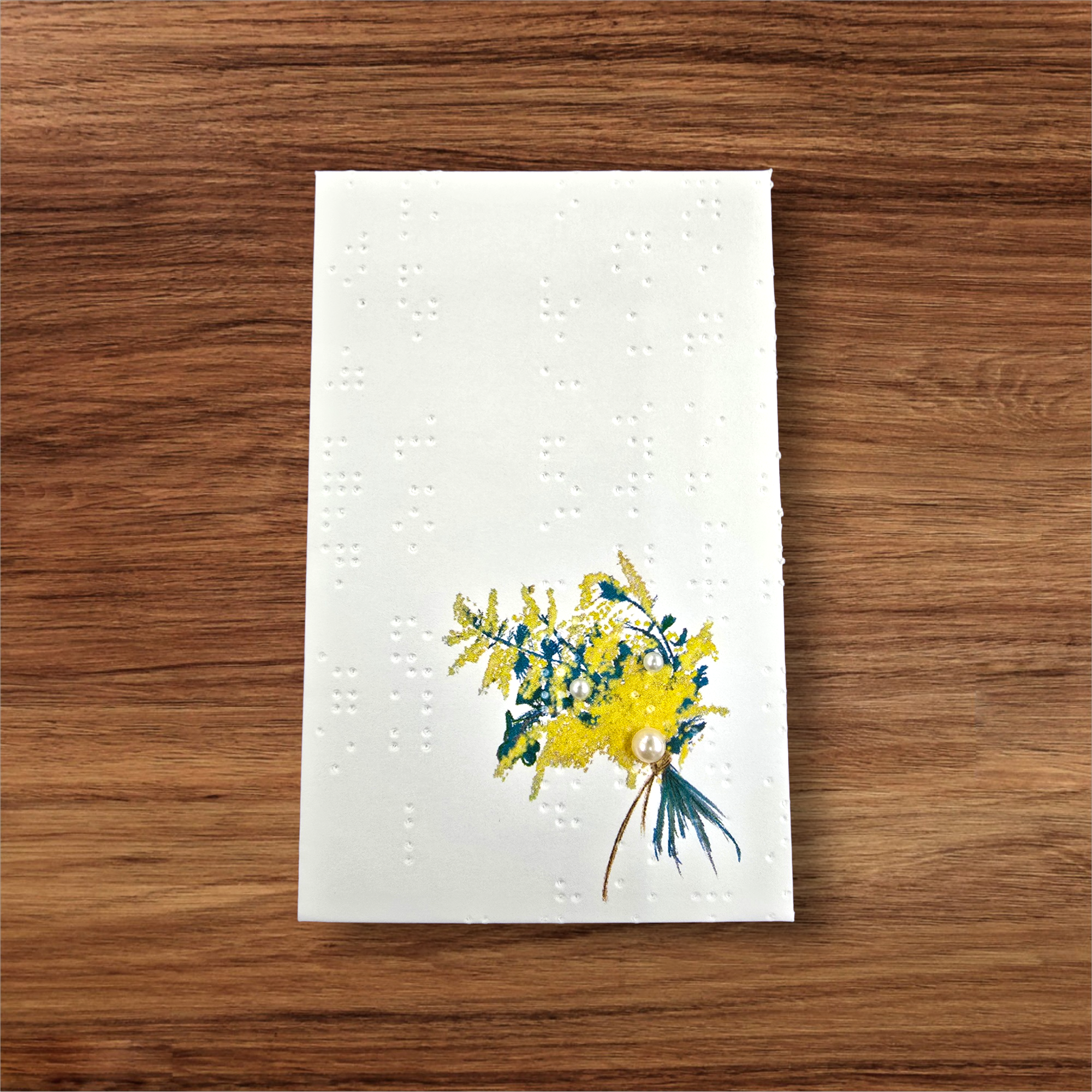 〈内容〉ミモザの花束柄 3枚入り(その内の2枚はパール付き)